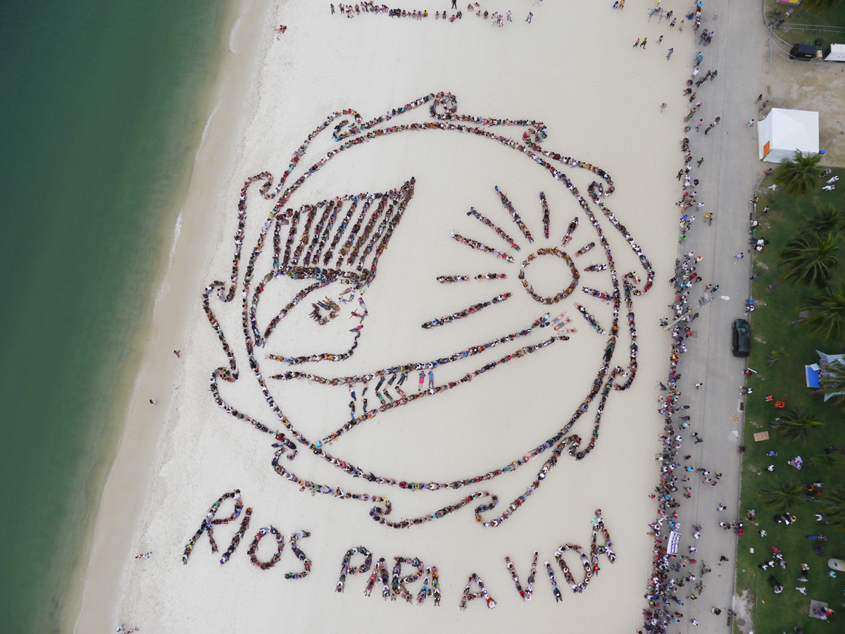 Amazon Watch 1000 person Human banner at Rio+20 at Flamengo Beach, “Rios para o Rio”